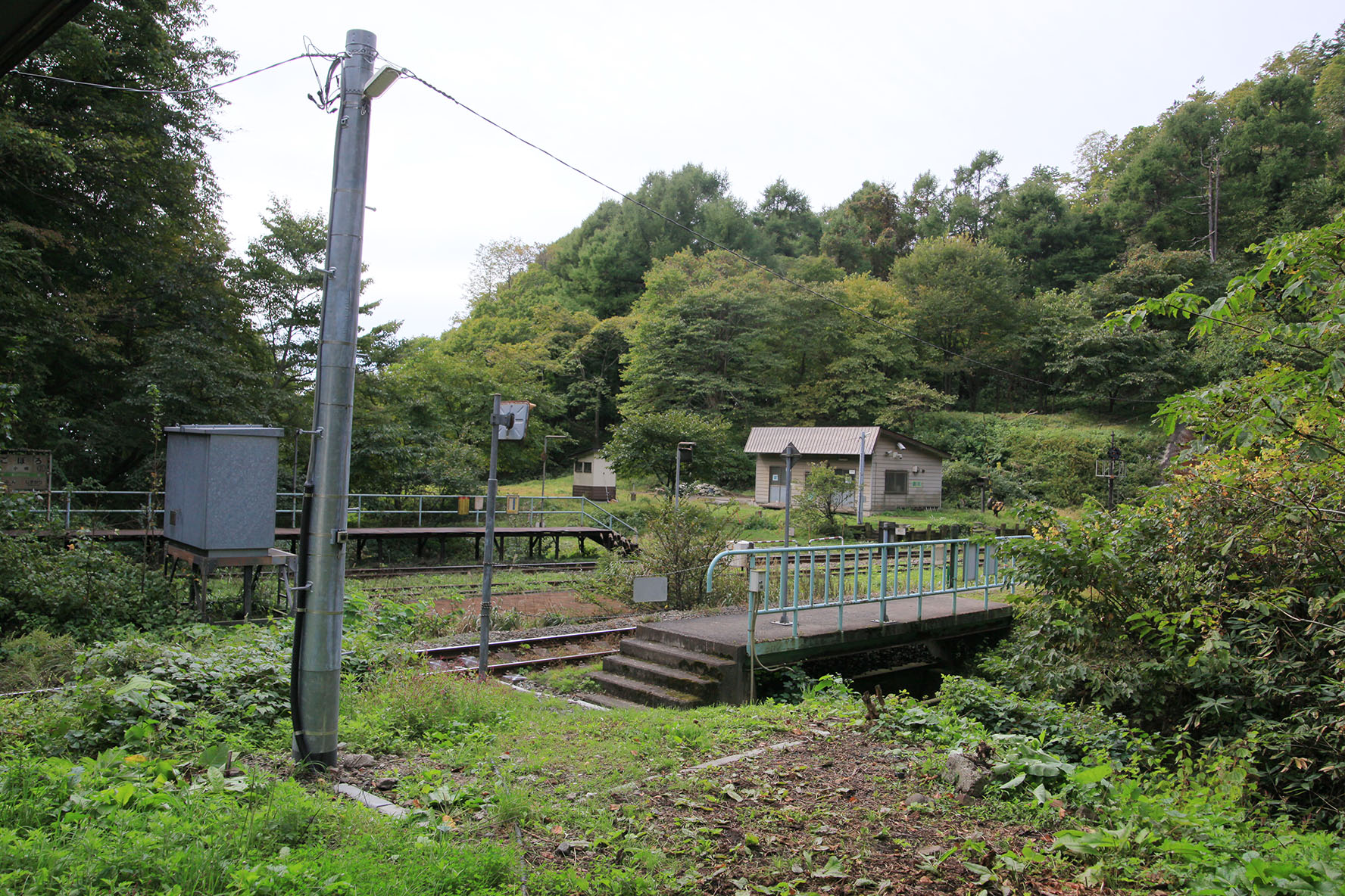 そして南側保線管理小屋前にあった木製電柱も金属製に建て替え.なんか随分と背が低くなった感じがするな.以前のそれが線路の上を超える電線を受ける都合で背が高かったというのもあるのだろうけど.