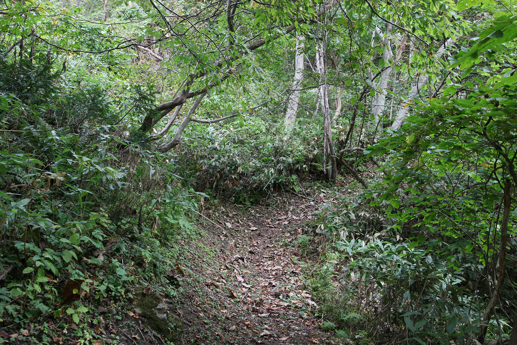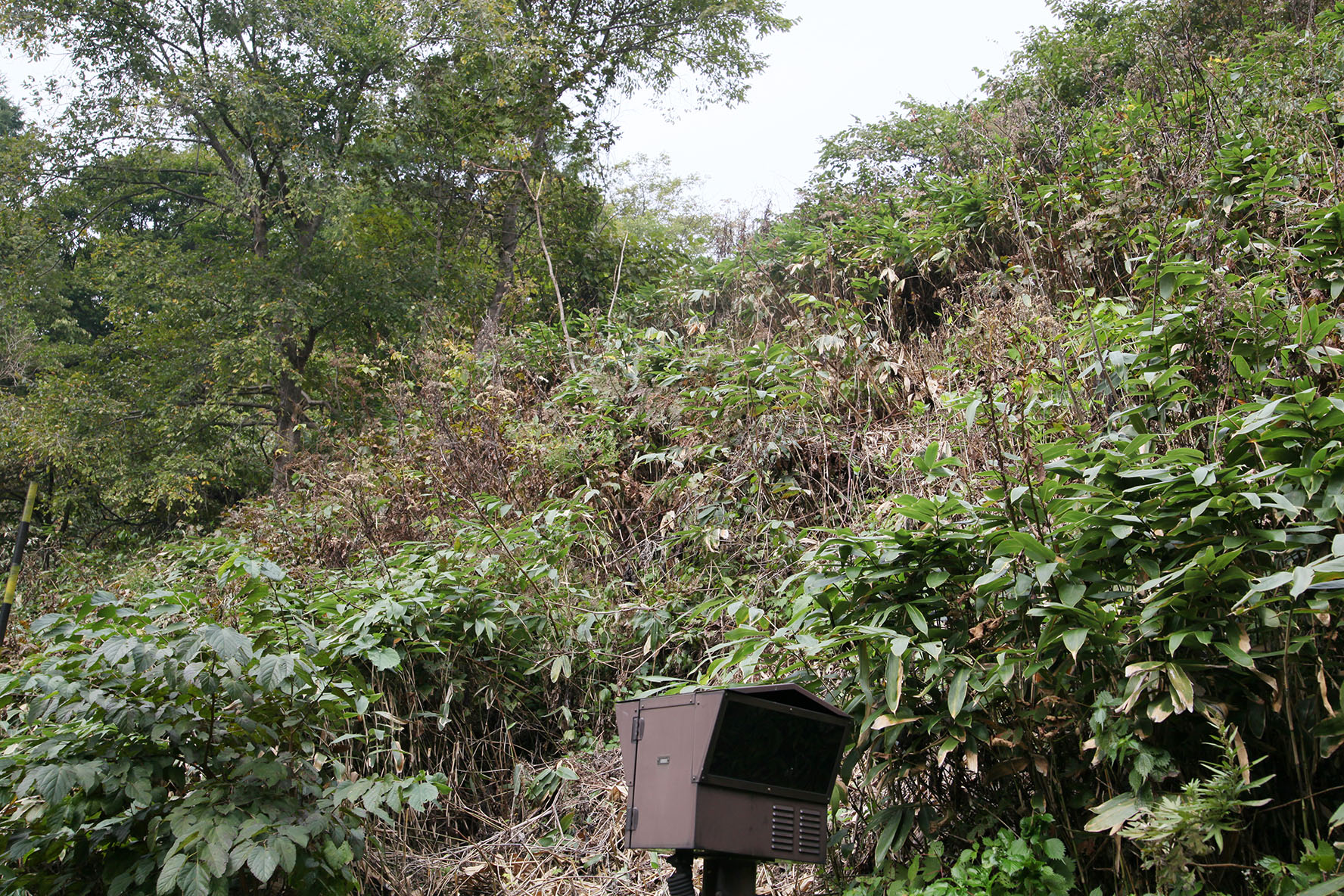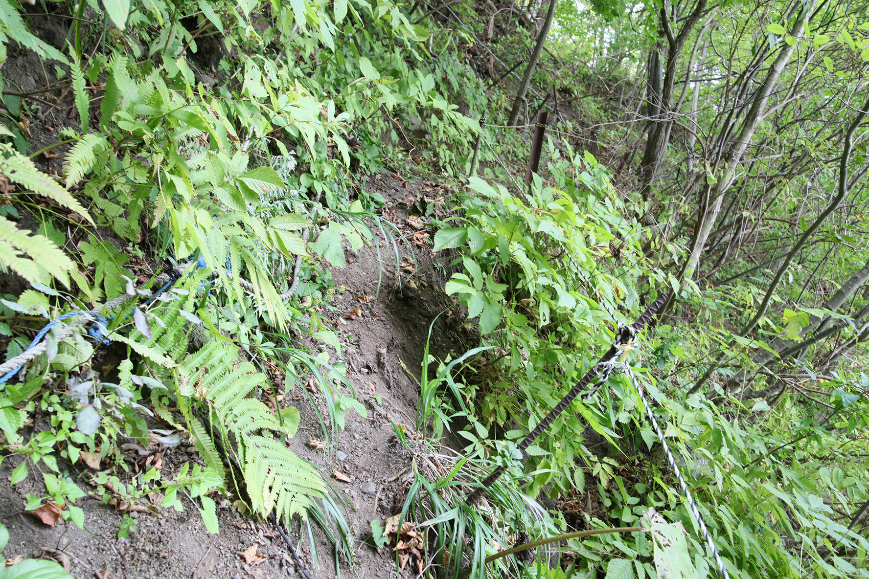 電柱撤去のために笹を刈り倒した跡があるのですが・・・電柱より奥まで刈り倒されているのはなぜだろう.まさか上から搬出したわけではあるまいに.何故そこまで気になっているかというと,このラインって北西に続く獣道の出入口そのまんまなんだよね.人が通りやすいところは獣も通りやすい.駅周辺から岩屋の方に続く道も冬になると鹿が通った跡が延々続いていたりするからねというのはさておき,ここを通った跡を残す獣というのが・・・名前を言ってはいけないアイツ,なものでね.北と秋田では人類と散発的紛争状態にあるアイツな.
