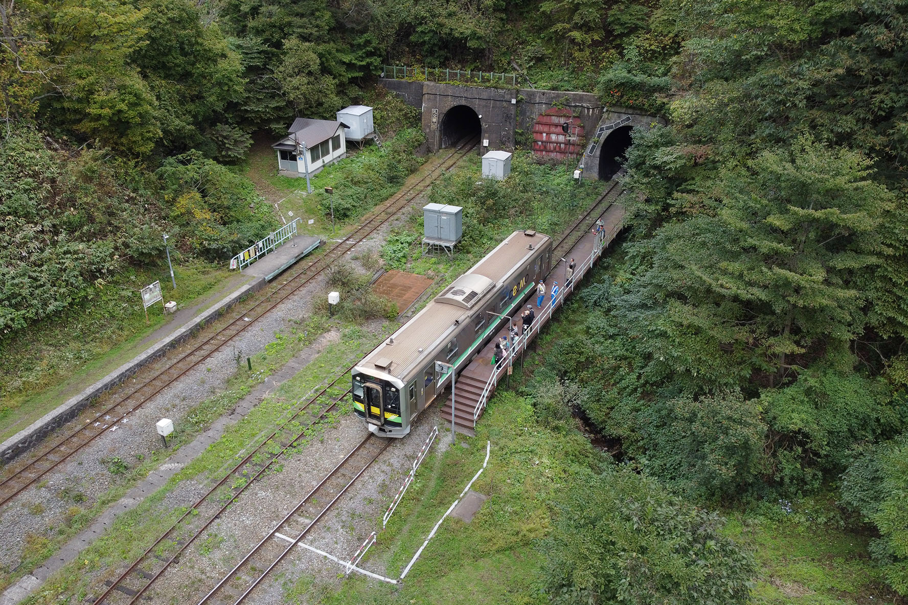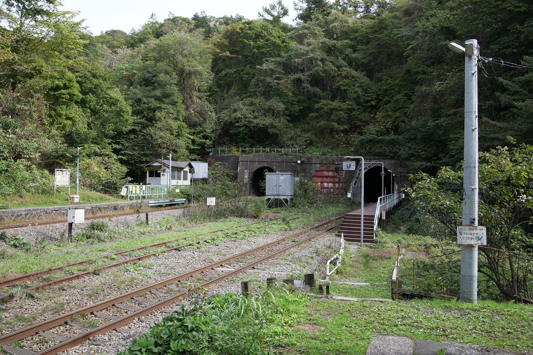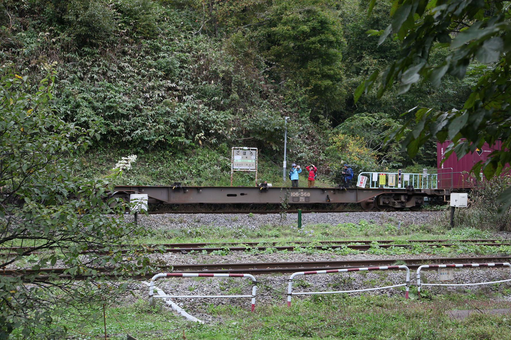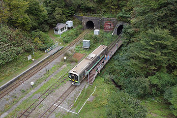 して,朝イチの汽車で来たのだけど珍しいことに先客が2名.ランドナーでツーリング中に「小幌駅前キャンプ場」で野営していたみたい.駅ノートに「北海道大学サイクリングクラブ」の署名があったけど,そこのメンバー氏かな? ここに自転車で「乗り付ける」人は時々いるようだというのは把握していたけど,実際に「乗り付けた」人を見たのは初めてのような気がする.近隣駅から輪行してくる人は見たことあるけど.倒木やら何やらあって押してくるだけでも大変なところ,荷物括り付けてあるなんつったら相当大変だろうに.それなりのロードや MTB 単体ならまぁ担いでいこうかという気にもなるけど.