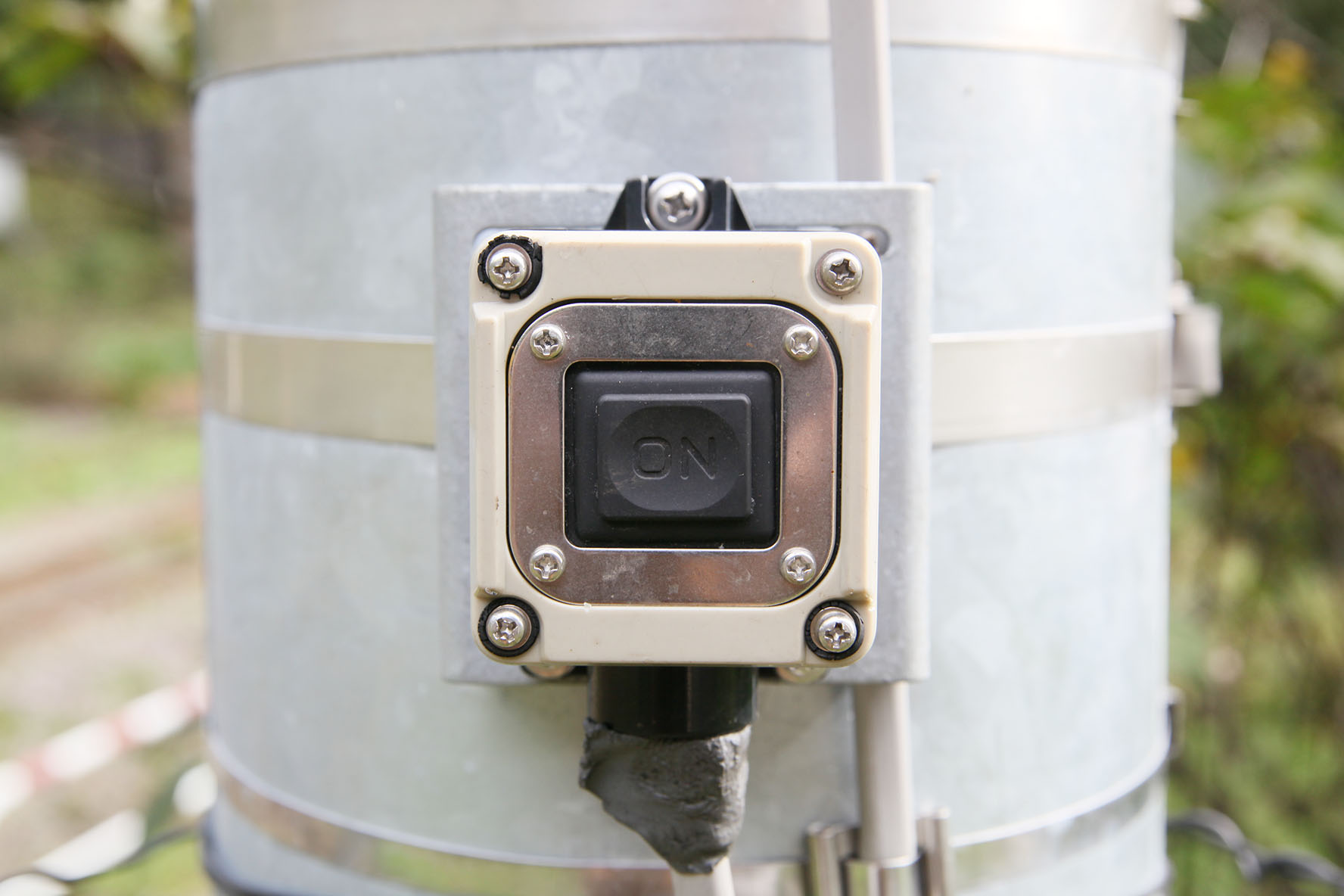北側保線管理小屋前.以前と同じように電灯のスイッチが付いている・・・のだけど,以前と違ってトグル式に.ついでに「NO」になってる.配線を下から出してる関係上,仕方がないのかなと思えば