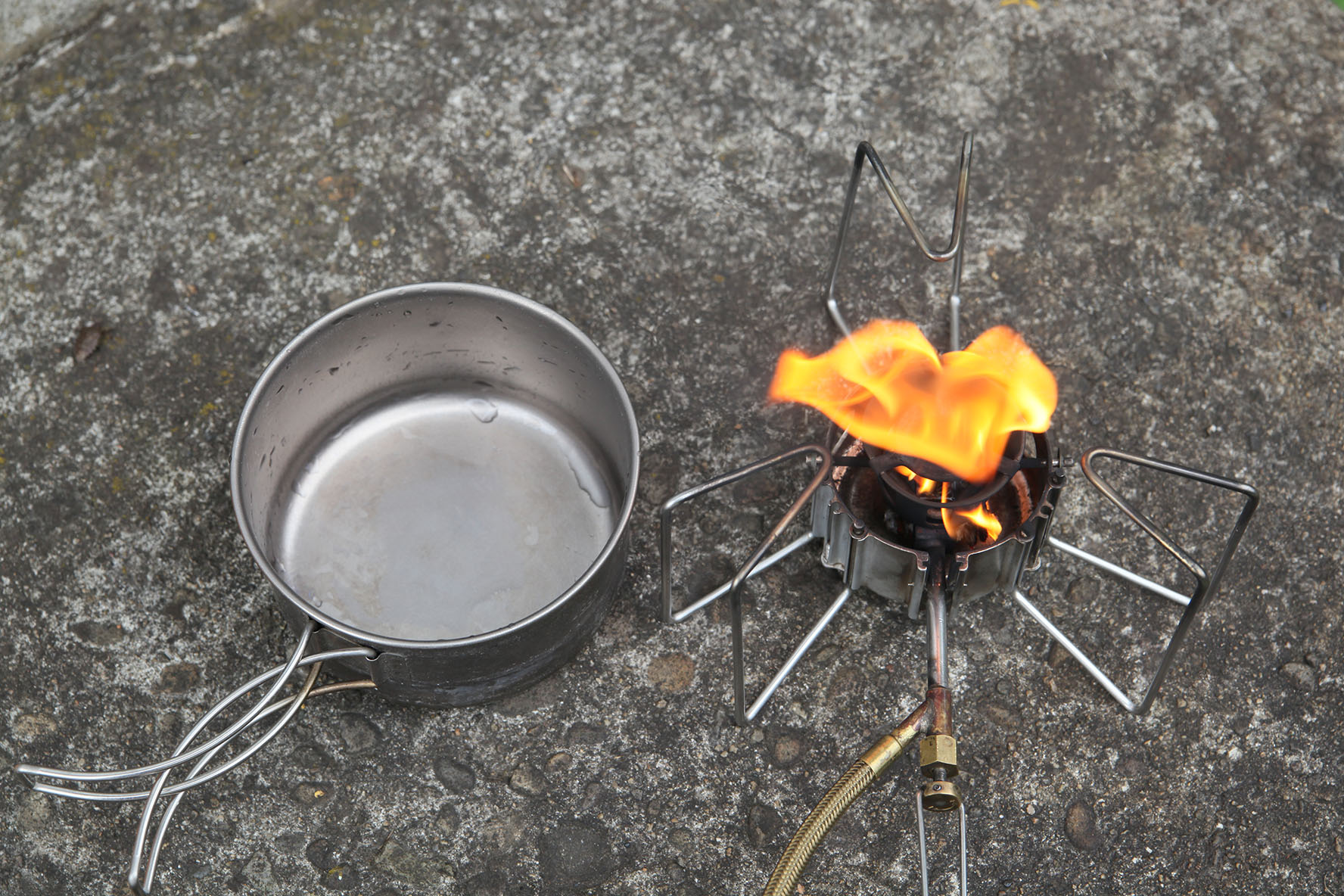なお当地でガス缶がまともに使えるのはこの時期のみです.春秋は火力が落ちるし,冬季は気化による内圧低下がトドメになって雪峰屋の金缶が何度も凍ったという実績あり.使えるのは唯一 EPI の X くらい.対して液燃は 10 ℃(冬季は特記なき限り横棒付き)で湯たんぽ相手にきっちり沸騰させられた実績.缶でも液出しなら同じように行けるのかもしらんけど「でかいガス缶器具」なら最初から液燃のほうが良いだろうと.「儀式」も,一分を争うんでもなければオツなもんですぜ.某Sブランドはそれが「不要」ということで売ってるけど,実演見るとこいつを余裕で超える火柱を上げてるそのシーンは何なんだと.あとはテントの中で点火できないのを除けば(※良い子はテント内で火気を使用してはいけません).この手順が面倒だという人はガストーチで炙ると一発で火が着くよ.どっちが面倒かは知らん.