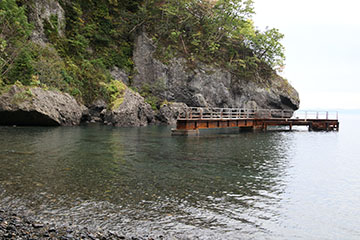 この桟橋もきちんと機能すればまた話が違ってくるのだろうけどね.でも以前風の日に礼文華漁港から船に乗せてもらったときはノフコッサの岬から先は危なくて無理って言われたことがあるんだよなぁ.波や潮のことは素人だが,そうホイホイと入ってこれるところでもないのかね.