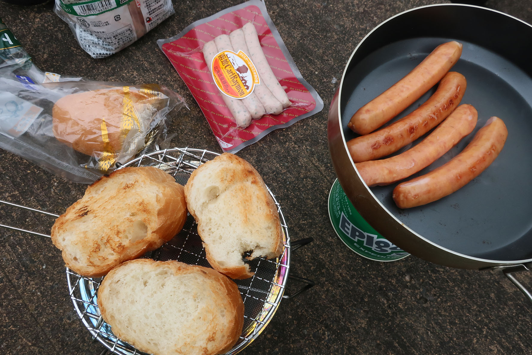 管理組合の朝は早・・・くはないかもしれないが,何故かバゲットが外せないという謎の習慣がある.バゲットやバターロールはコッヘルの掃除に丁度いいからねー.そしてこの場に集結した燃料はケロ,アルコール,EPI X.カタギな火力を持ってくる奴がひとりもいない.ゐや実際 P+ だ金缶だなんて9月過ぎたら苦しいのよ.「ノクターン」揺らすくらいならともかく.
